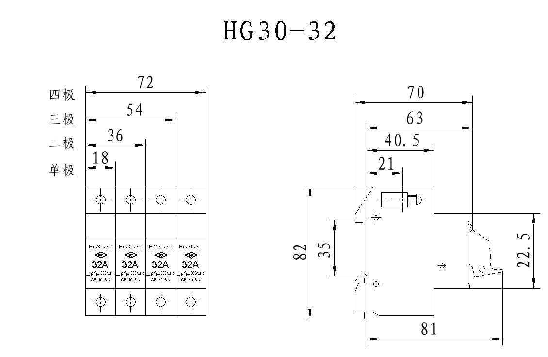 HG30系列熔斷器式隔離器,額定電壓至交流400(380)V,額定電流至50A,適用于有高短路電流的配電電路和電動機電路中,作為電源隔離器并作電路過載和短路保護之用。